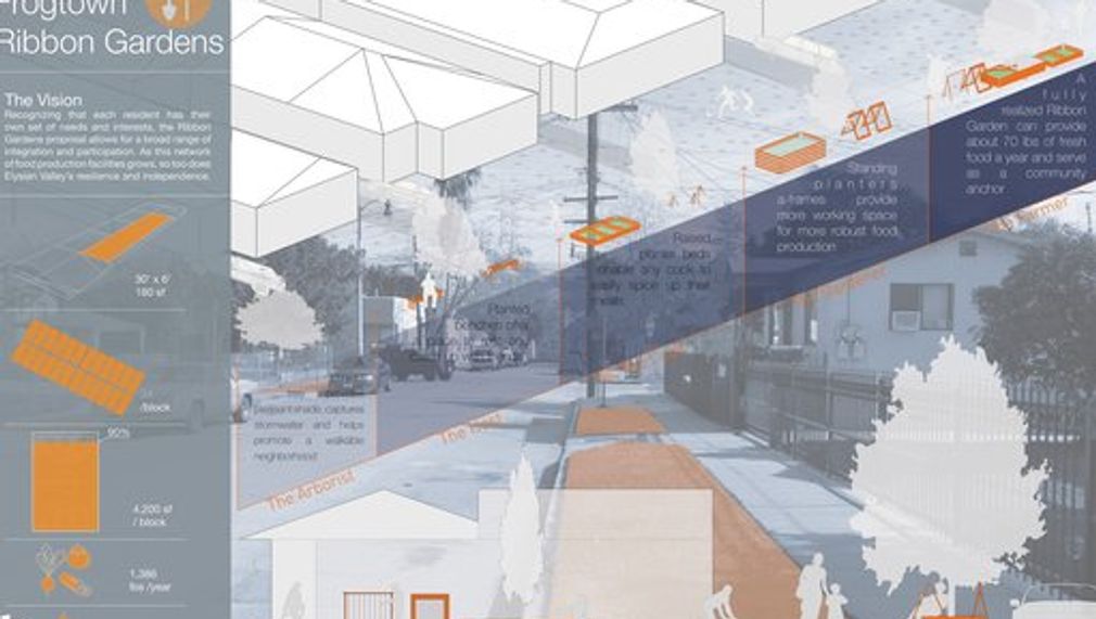 In addition to mitigating long-standing community food access issues in Elysian Valley, the Frogtown Ribbon Gardens serve as a neighborhood-scale pilot project for a readily implementable strategy to combat conditions found throughout Los Angeles' food deserts. The consciously designed and branded Ribbon Garden planter elements combined with the inherently community-driven nature of this effort will raise attention and advance conversation around this issue to foster complementary zoning and policy priorities by the City to further reduce the occurrence and effects of food deserts in LA. By the Fall of 2015, Los Angeles will have a neighborhood-scale pilot project demonstrating the viability of this approach. By 2050, the lessons learned from the project and the momentum gained through iterative adaptations in food deserts across the city will yield a robust network of community-driven food production and significant inroads made into the reduction of childhood obesity and other key indicators inherently tied to conditions found in food deserts.
