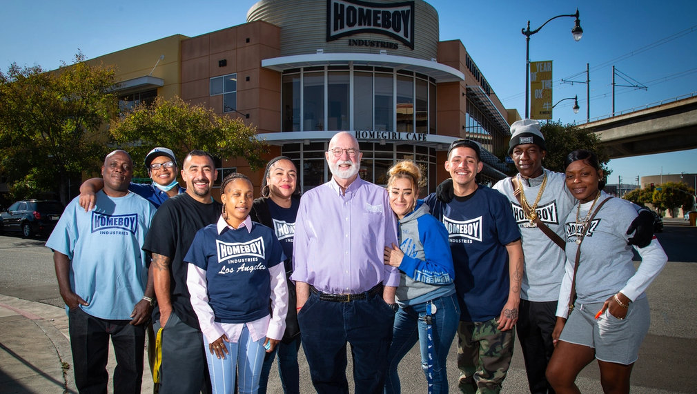 Given that 25% Homeboy Industries' constituents have historically been 14-21 years old, we recognized the need to focus intentionally on juvenile reentry and launched the Youth Reentry Center in 2020. Annually, the Boyle Heights-based center provides 250 youth participants with support and resources related to education, employment, housing, basic needs, legal support, and others, in a cohort-based 12-month program. An integral component of our youth programming, the Homeboy Art Academy, provides community-based art programs that inspire hope, provide a commitment to transformation, and cultivate resiliency through a unique, culturally competent approach. The Art Academy’s work is strongly aligned to the Youth Reentry Center’s overarching goal to reduce recidivism among youth and young adults by providing opportunities for healing and access to the creative economy. The Youth Reentry Center reaches some of the hardest to engage youth in LA County. Due to the high density of gangs, many of our participants have been directly exposed to gangs by family members, friends, and members of their community. Youth in our community look to gangs as a place where they can feel seen and safe. We offer something else. For 34 years, Homeboy Industries has modeled an alternative to the revolving door of gang-involvement and incarceration in LA by offering a healing place for system-involved Angelenos to be seen for the first time, shifting the way they see themselves in the world.
