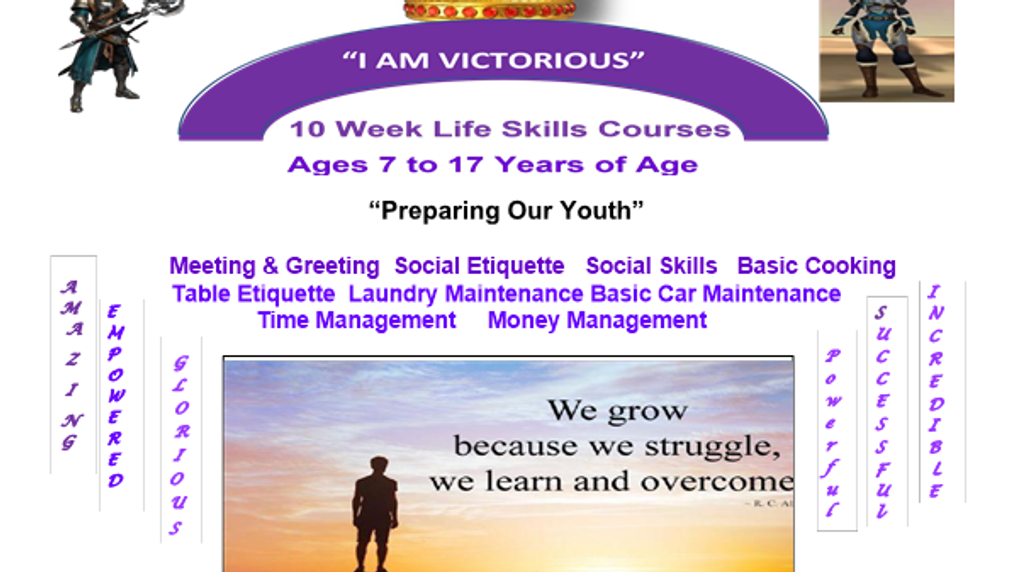The "I Am Victorious" is a 10-week program which prepares our youth with social and life skills, and knowledge as they navigate through their journey of life. It prepares our youth with sustainable skills while instilling confidence, self-worth, and self-discipline. The provides the highest quality courses and essential resources such as social etiquette, money and time management, car maintenance and detailing with instructions on entrepreneurships, table etiquette, and more, regardless of their background, race, or financial circumstances.